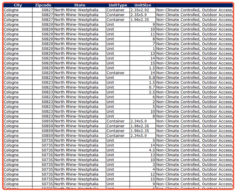 Self-Storage Rate Data APIs & Custom Reports